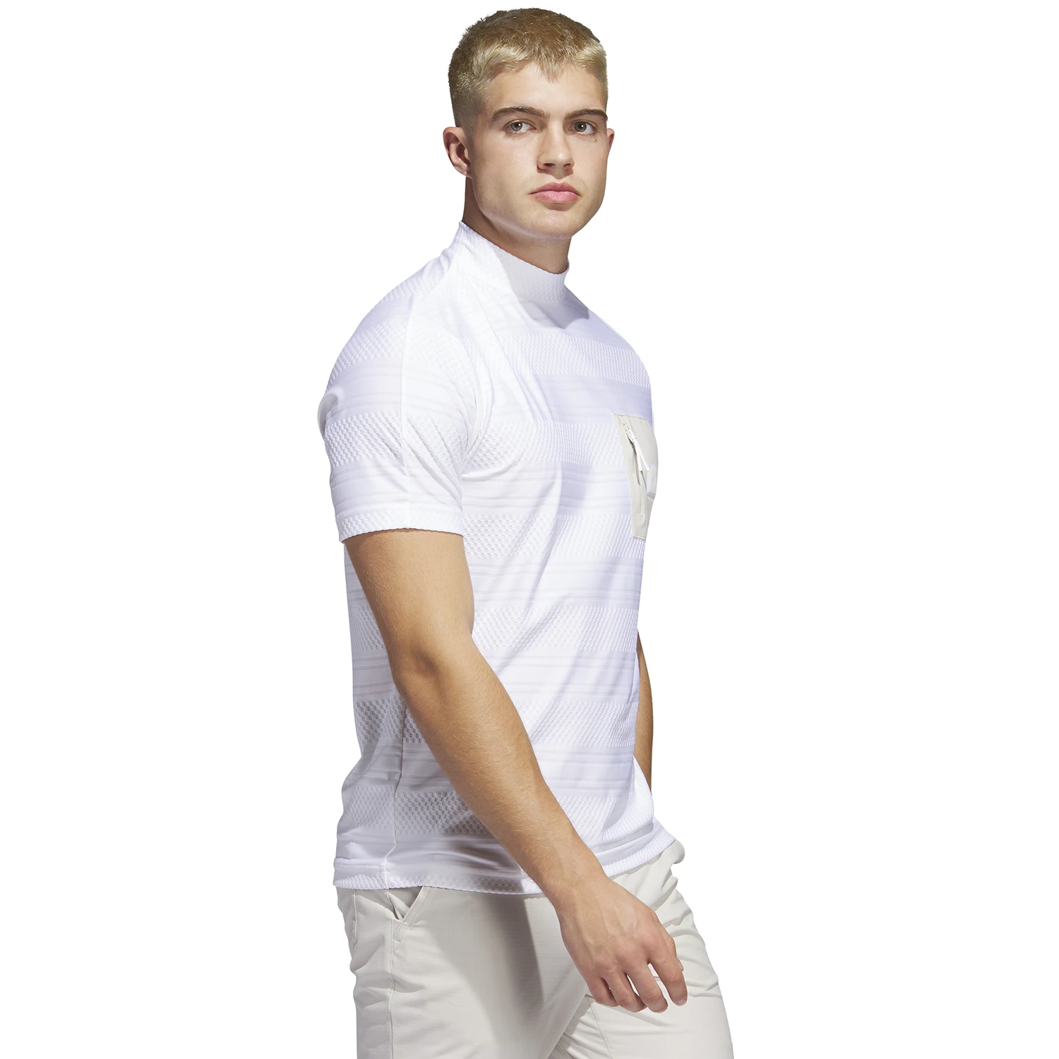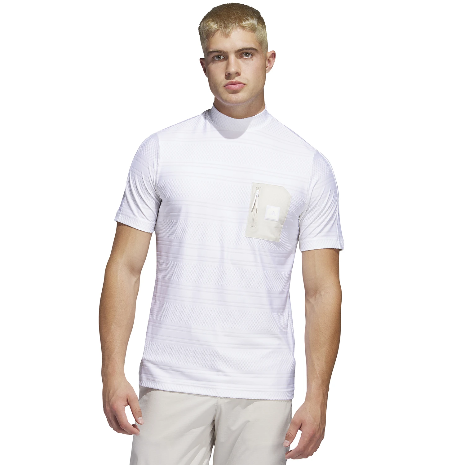 The adidas adicross Mock Neck Golf Polo Shirt features an appealing mock neck collar and a progressive look which is right on trend. An all over, tonal texture elevates the visual style appeal, whilst the adicross branding is located on the stylish zipped chest pocket. A raglan construction provides an enhanced range of motion, while the soft and lightweight fabric provides moisture wicking for comfort on the inside.
